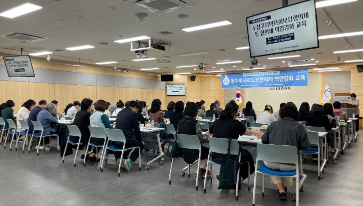 [뉴스서치] 대구 수성구는 지난 10일 지역사회보장협의체 활성화를 위해 23개 동 지역사회보장협의체 위원장과 동장, 찾아가는복지전담팀장 등을 대상으로 협의체 역량강화교육 ‘행복수성 복지학교’를 실시했다.