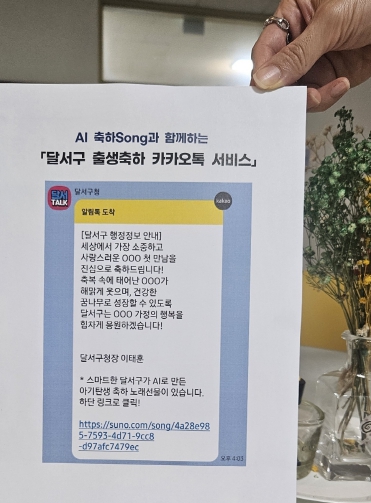 ▲ 달서구, 생성형 AI활용 출생 축하 카카오톡 서비스 추진 |