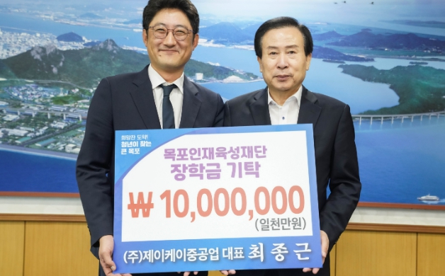 [뉴스서치] 목포 연산동에 위치한 ㈜제이케이중공업(대표 최종근)이 지난 28일 목포인재육성재단에 우수 인재 양성을 위한 장학기금 1,000만원을 기탁했다.
