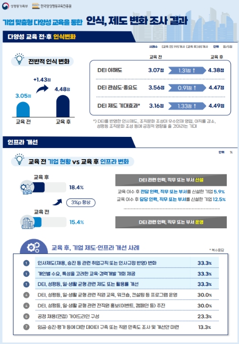 성평등가족부는 기업의 DEI를 일회성 교육 과제가 아니라 지속 가능한 경영 기반으로 정착시키기 위해 지역 및 직종별 특성을 반영한 맞춤형 교육을 확산해 나갈 방침이다.