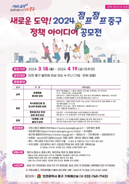 ▲ 새로운 도약! 2024 점프점프 중구’ 인천 중구형 정책 아이디어 공모 |