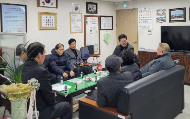 ▲ 지난 2월 5일 중구보훈회관서 관내 보훈단체 관계자들과 설명절 인사를 나누는 중구청장 |