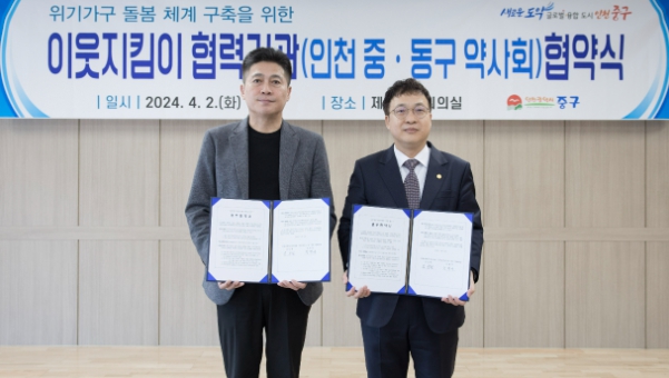 는 인천 중·동구 약사회(회장 천명서)와 지난 2일 제2청 대회의실에서 이 같은 내용의 ‘위기가구 돌봄 체계 구축을 위한 이웃지킴이 협력 기관 업무협약’을 체결했다.