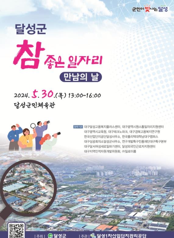 [뉴스서치] 달성군은 오는 30일 달성군민체육관에서 2024년 달성군 취업박람회 '달성군 참 좋은 일자리 만남의 날'을 개최한다.