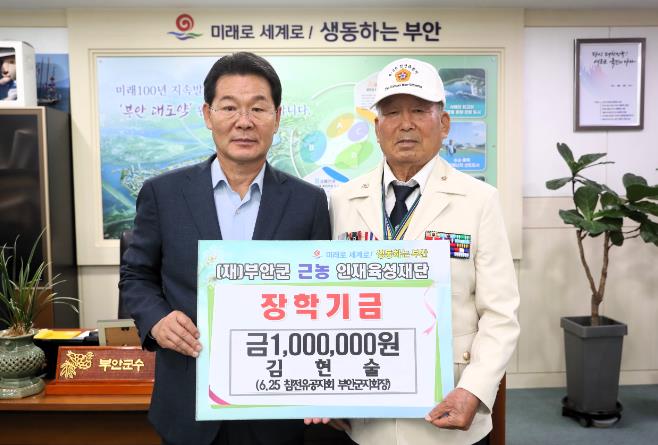 ▲ 부안군 김현술 6.25 참전유공자회 부안군지회장, 지역인재 육성을 위한 장학금 기탁 |
