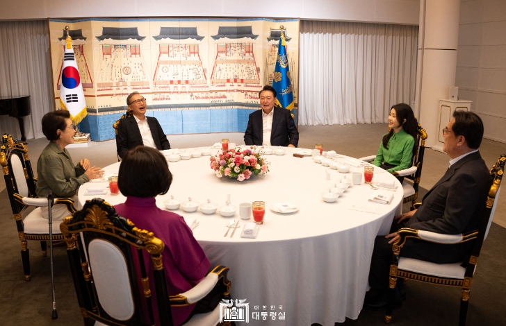 [뉴스서치] 윤석열 대통령 부부는 8월 12일 저녁 6시 30분부터 약 3시간 동안 대통령 관저에서 이명박 前 대통령 부부와 만찬을 했다.