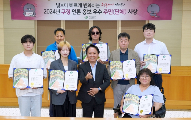 구는 언론매체에 소개되며 나눔과 봉사의 선순환을 이끌고 지역의 좋은 이미지를 확산시킨 우수 기업과 단체, 개인 등을 매월 선정해 ‘구정언론홍보 표창’을 수여하고 있다.