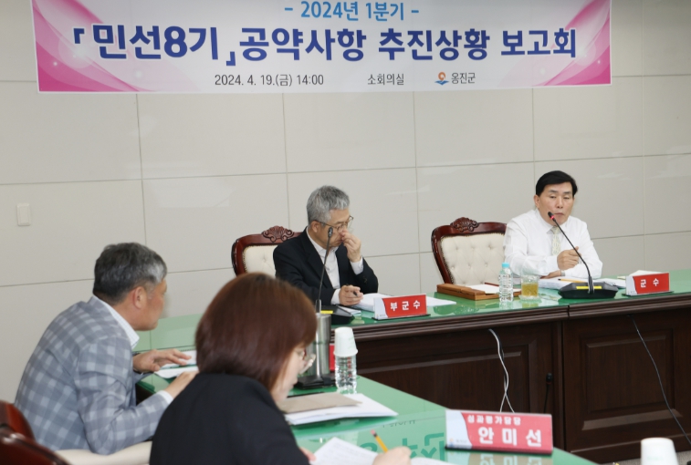 문경복 군수는 “공약사항은 군민을 위한 군민과의 소중한 약속이고, 바람직한 군정 운영의 핵심이기에 이번 보고회를 통해 공약사항이 순조롭게 완료될 수 있도록 최선을 다하겠다”며, “공약사업 추진으로 군민들께서 옹진이 새로워지고 발전되는 것을 체감 할 수 있도록 성과와 결실로 보답하겠다”고 말했다.