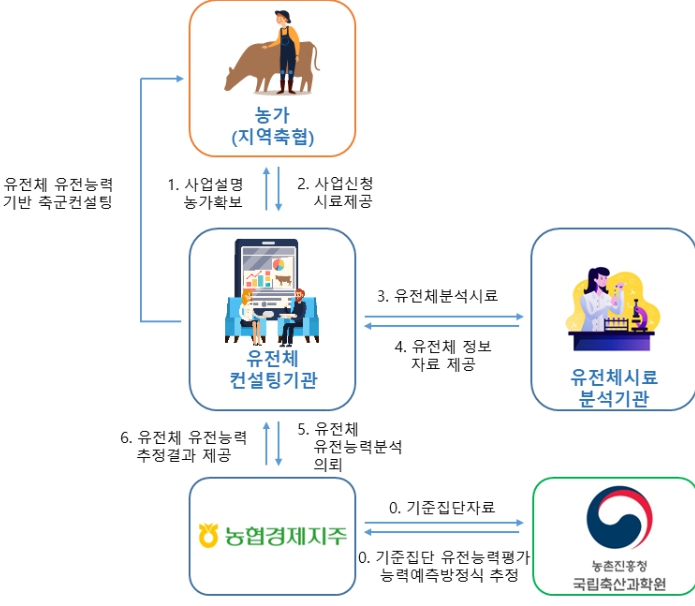 ▲ 한우 암소 유전체 유전능력 예측 서비스 체계도