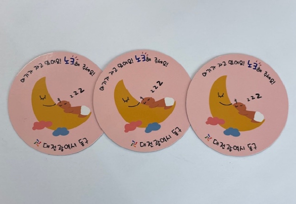 [뉴스서치] 대전 동구는 오는 26일부터 관내 출생신고를 하는 가정을 대상으로 ‘아기가 자고 있어요! 노크해 주세요!’ 초인종 자석 스티커를 제작해 무료로 배부한다.