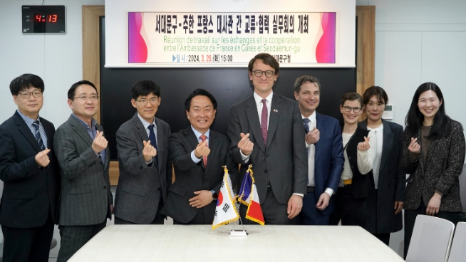 [뉴스서치] 서대문구는 최근 구청 회의실에서 주한 프랑스 대사관과 실무회의를 개최하고 양 기관 간 교류 협력 강화를 위한 방안들을 논의했다고 29일 밝혔다.