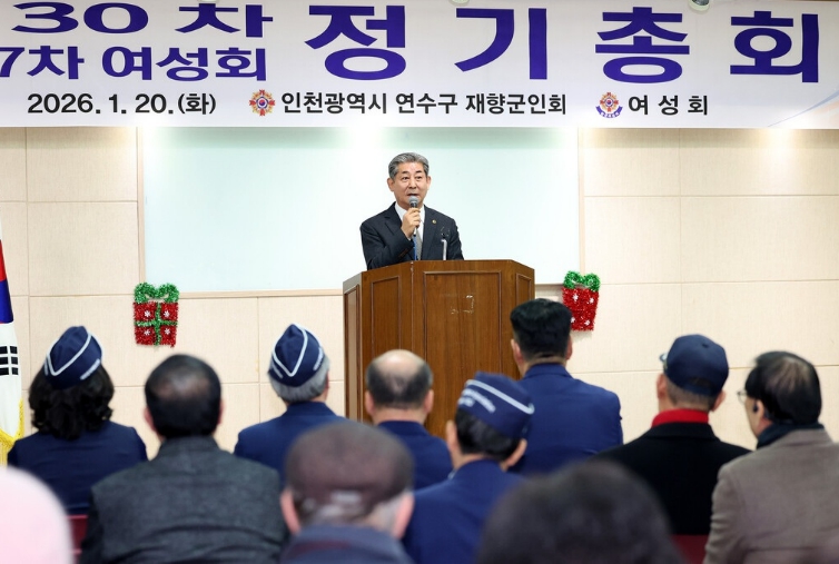 [뉴스서치] 인천광역시의회 정해권 의장(국·연수구1)은 20일 인천시 연수구 보훈회관에서 열린 ‘2026년 제30차 연수구 재향군인회 및 제27차 연수구 재향군인회 여성회 정기총회’에 참석해 회원들을 격려했다.