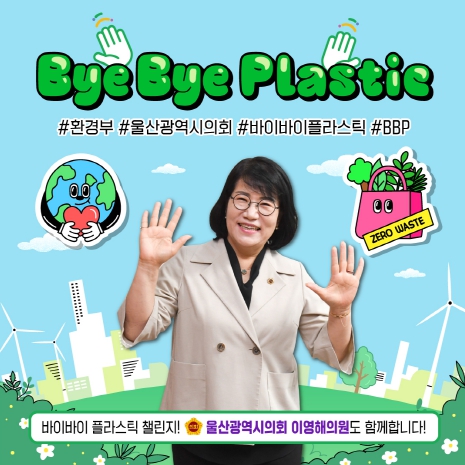 [뉴스서치] 울산광역시의회 이영해 의원은 7일 일상생활 속에서 불필요한 플라스틱 사용을 줄여 환경보호를 실천하자는 ‘바이바이 플라스틱(Bye Bye Plastic) 챌린지’에 동참했다.