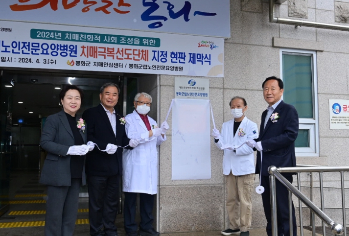 [뉴스서치] 봉화군 보건소 치매안심센터는 3일 봉화군립노인전문요양병원을 치매극복 선도단체로 신규 지정하고 현판식을 개최했다.
