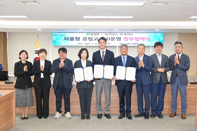 [뉴스서치] 달성군은 지난 4월 30일 군청 상황실에서 다사고 포산고와 자율형 공립고 2.0 운영을 위한 업무협약을 체결했다.