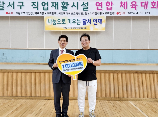 [뉴스서치] 대구 달서구가 지난 30일 달서구 장애인직업재활시설 연합회에서 제1회 연합 체육대회 개최 및 체육대회 시 달서구 인재육성재단에 100만원의 성금을 기탁했다고 밝혔다.