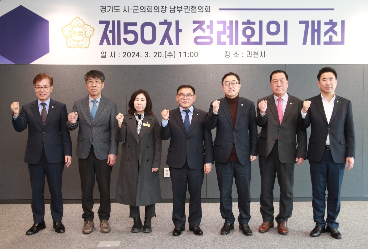 [뉴스서치] 용인특례시의회는 20일 오전 11시 과천시 디테크타워 미래홀에서 경기도시·군의회의장 남부권협의회(회장 윤원균) 제50차 정례회의가 개최됐다고 밝혔다.
