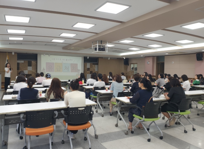 이번 연수는 장시간 유치원 방과후 과정(돌봄) 참여 유아들의 건강과 안전을 지키고 돌발 위기 상황에 대처하기 위한 ‘응급처치 및 심폐소생술’ 실습형 안전교육으로 진행됐다.
