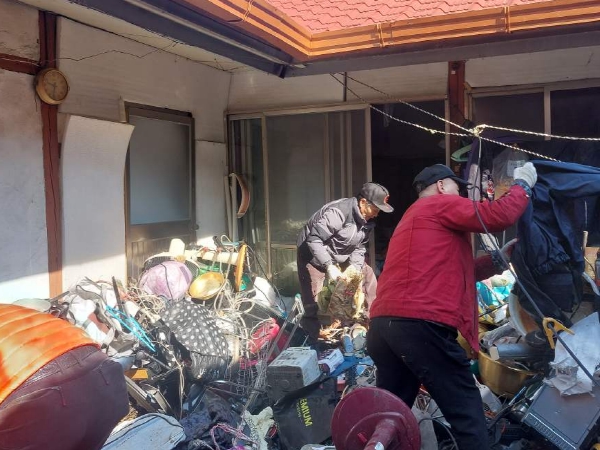 대상자는 동네 주민이 버린 쓰레기와 재활용품을 수레로 모으는 ‘저장강박증’을 지닌 독거노인으로, 집안이 쓰레기로 가득 차 누울 공간조차 없는 위험한 환경에서 거주하고 있었다.
