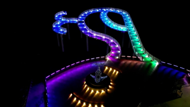 총사업비 19억원이 투자된 ‘영흥 반딧불이 하늘고래 스카이워크’는 총연장 180m, 폭3m 교량구조의 안전한 해상보행교로, 일몰이후 다채롭게 펼쳐지는 경관조명이 매우 아름답고 인상적이다.