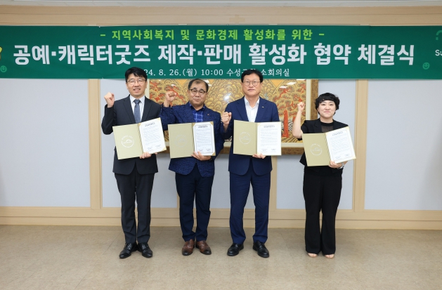[뉴스서치] 대구 수성구는 지난 26일 지역 3개 복지기관과 공예·캐릭터 굿즈 제작·판매 활성화 협약을 체결했다.