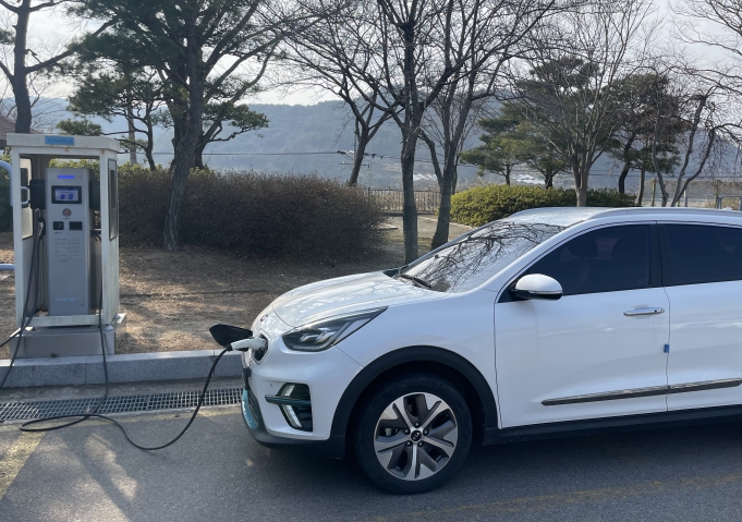 ▲ 영덕군 완속 충전기에서 충전 중인 전기자동차 모습. |