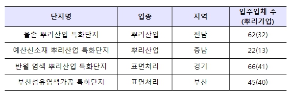 | ▲ (신규 지정) 율촌 뿌리산업 특화단지 등 4개 단지 |