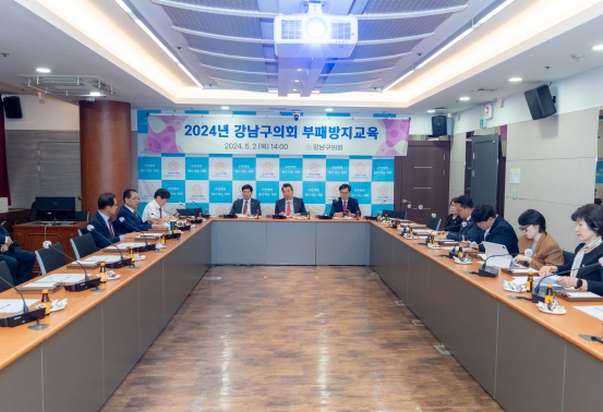 [뉴스서치] 강남구의회는 2일 오후 구의회 6층 열린회의실에서 전체 의원 및 구의회사무국 직원들을 대상으로 부패방지 교육을 실시했다.