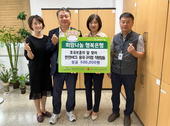 [뉴스서치] 한전MCS 동대구지점 직원 일동은 25일 지역의 어려운 이웃을 위해 써달라며 성금 50만원을 대구 수성구청에 전달했다.