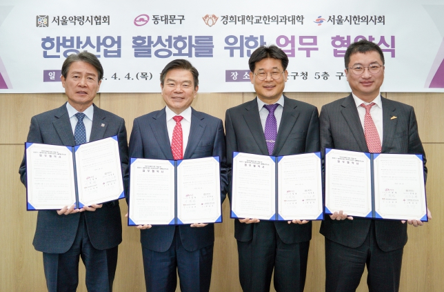 이날 협약식에는 이필형 동대문구청장을 비롯해 성관호 서울약령시협회장, 고성규 경희대한의과대학장, 박성우 서울특별시한의사회장이 참석했다.