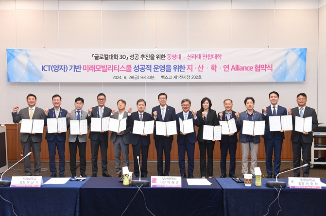 [뉴스서치] 부산시는 오늘(28일) 오전 9시 30분 벡스코에서 '글로컬대학 성공적 추진을 위한 동명대-신라대 연합모델 ICT(양자) 기반 미래모빌리티스쿨 지·산·학·연 업무협약'을 체결했다고 밝혔다.
