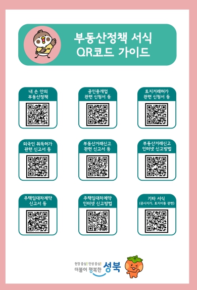 ‘부동산정책 서식 QR코드 가이드’는 개업공인중개사무소, 구청, 동주민센터 각 민원실, 성북구 누리집에서 확인할 수 있다.