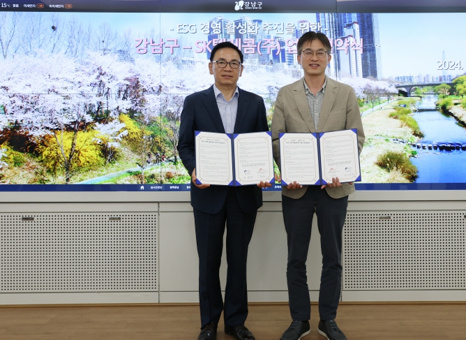 [뉴스서치] 꿈이 모이는 도시, 미래를 그리는 강남구가 2050년 탄소중립 실천을 위한 ESG 경영 활성화를 위해 SK텔레콤과 17일 구청에서 업무 협약을 체결했다.