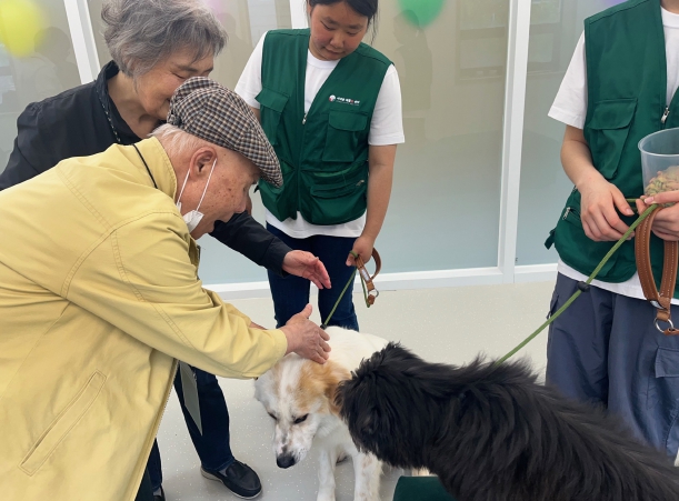 서대문구 치매안심센터와 연계한 가운데 센터의 매개 치유견 4마리가 노인들과 교감을 나눴다.