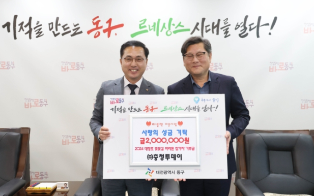 이날 기탁식에는 박희조 동구청장, 박신용 충청투데이 대표이사 등이 참석해 자리를 빛냈으며, 기부금은 동구의 대표 복지브랜드인 ‘천사의 손길’을 통해 어려운 이웃들에게 전달될 예정이다.