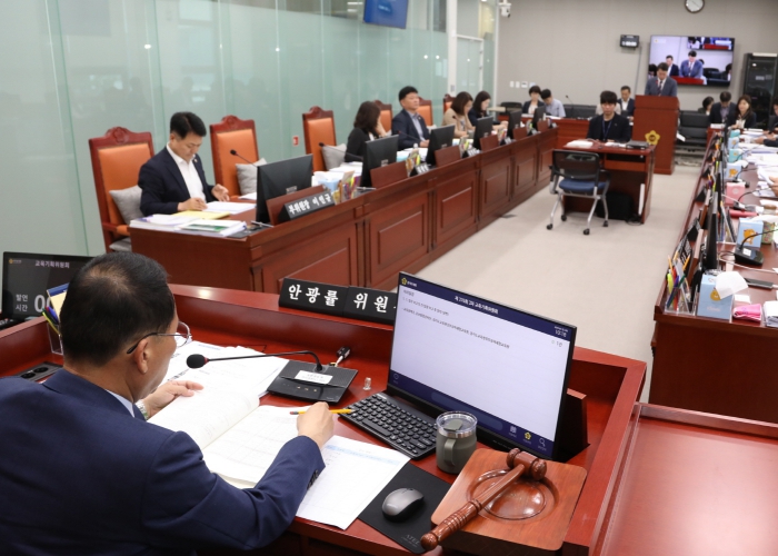 안광률 위원장은 “오늘 제11대 후반기 첫 상임위 회의를 시작으로 2년간 교육 현장 소리에 보다 귀를 기울이고 집행부와의 지속적인 소통과 협의의 장을 마련하여 경기교육이 새로운 미래를 열어갈 수 있도록 방향성을 제시하고자 한다”라며 새로운 시작을 알렸다.