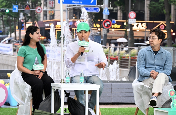 이날 오 시장은 서울시 홍보대사 배우 박진희씨의 사회로 건축가 유현준 홍익대 건축학부 교수, 김덕원 환경연구자, 인플루언서 일라이다 아심길(6.25 참전용사 후손)과 ‘도심 속 수변, 청계천에서 만나요’를 주제로 이야기를 나누고 시민들과 소통했다.