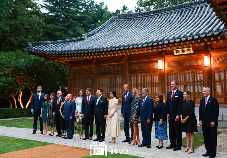 ▲ 9월 2일 윤석열 대통령 부부는 한국을 방문 중인 「빌 해거티(Bill Hagerty)」 상원의원을 비롯한 美 연방 상원의원 7명과 그 배우자들을 청와대 상춘재에 초청하여 만찬을 갖고, 한미동맹 발전 방안에 대해 의견을 교환했다.