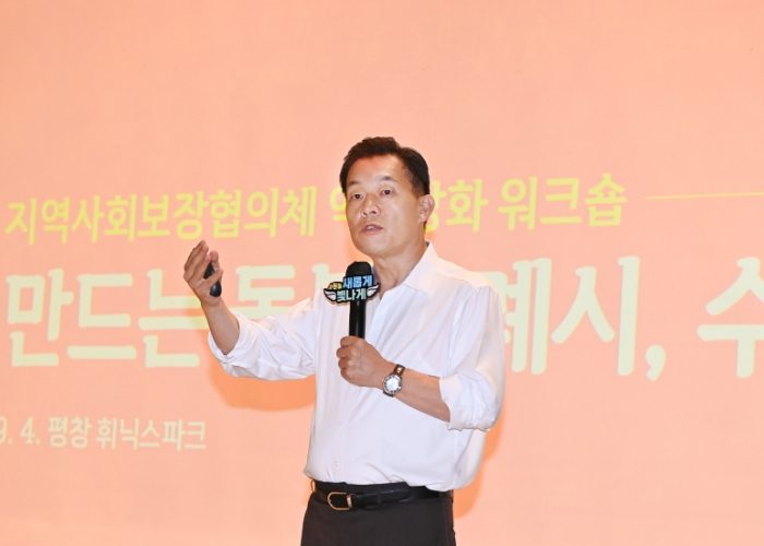 2024 수원시 동 지역사회보장협의체 워크숍은 3~4일 강원도 평창군 일원에서 열렸다. 이번 워크숍에는 지역사회보장협의체 위원 130여 명이 참석했다. 수원시 지역사회보장협의체 공공위원장인 이재준 시장은 3일 평창 휘닉스파크 포레스트홀에서 ‘함께 만드는 돌봄특례시, 수원’을 주제로 특강을 했다.