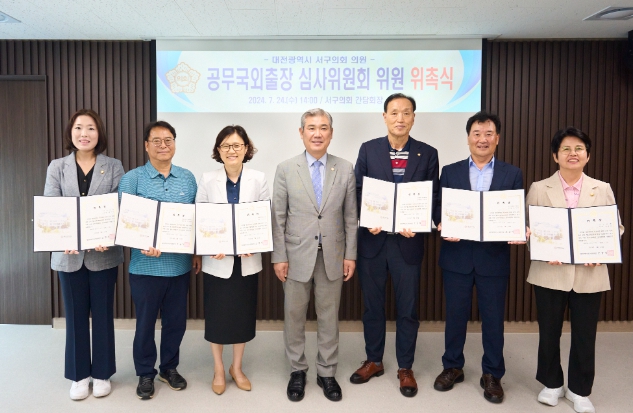 [뉴스서치] 대전 서구의회는 24일 의회 간담회장에서 공무국외출장 심사위원 위촉식을 개최했다.