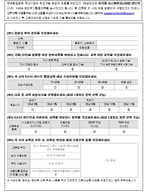 찾아가는 ‘KASA 한국형 시스템엔지니어링 핸드북 활용교육’ 수요조사 실시
