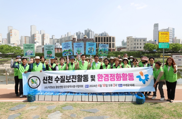 이번 환경정화활동은 신천둔치의 쓰레기를 수거하는 등 산책로를 정비하고, 수질보전을 위해 부레옥잠을 식재하고 미꾸라지를 방사했다. 아울러, ‘2050 탄소중립’ 달성을 위한 생활 속 탄소중립 실천 홍보・캠페인도 함께 실시했다.