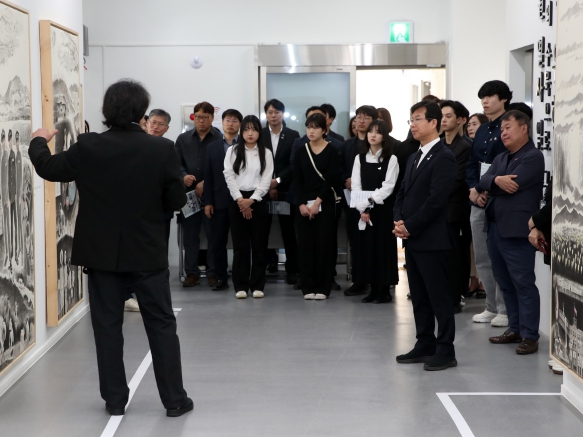 또 지난 4월 17일 개관한 '윤상원 기념관(천동마을 민주커뮤니티센터)'을 방문해 ‘님을 위한 행진곡-윤상원 일대기 전(展)’ 전시를 관람했다. 윤상원 일대기 그림을 그린 하성흡 작가가 동행해 직접 작품을 해설하며 안내했다.