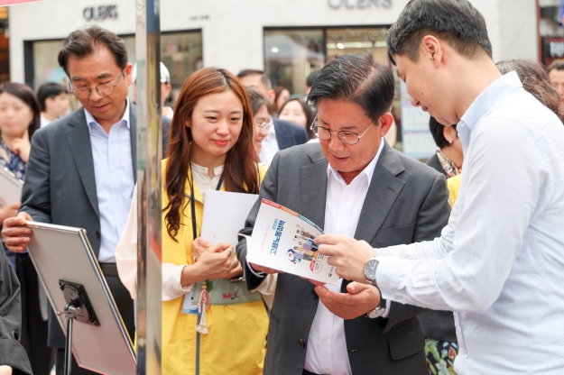 [뉴스서치] 박강수 마포구청장은 17일 오후, ‘홍대 레드로드 청년 일자리 페스타’가 열린 홍대 레드로드 R4를 찾았다.