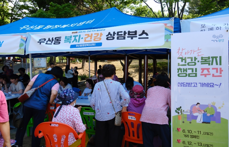 각 동과 광산구 7개 복지‧보건 담당 부서, 7개 민간단체가 협업해 한 주간 거리 상담, 캠페인을 진행하며 혈당, 혈압 등 검사를 기반으로 건강‧복지정보 안내 및 상담을 제공하고, 지역 내 복지관, 마을건강센터 등과 연계해 맞춤형 서비스를 지원하고 있다.