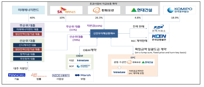 신안우이 해상풍력 발전사업은 총 3.4조가 소요되는 전체 사업비 중 5,100억원은 자기자본으로, 2조 8,900억원은 타인자본으로 조달된다.