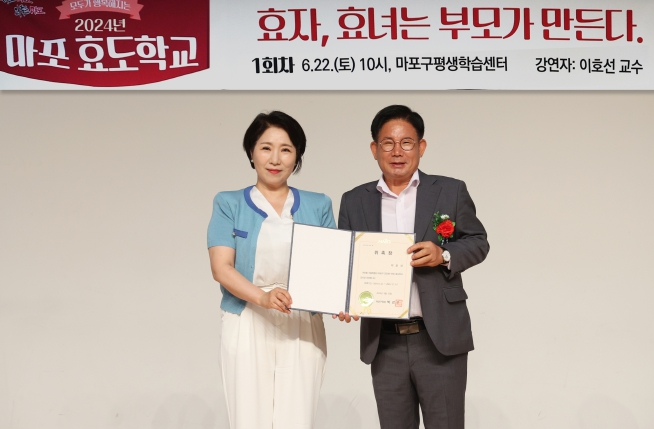 강연에 앞서 박강수 마포구청장은 이호선 교수에게 위촉장을 수여하고 인사말을 통해 “다양한 세대가 공감하고 필요로 하는 효도 교육을 위해 각 분야의 전문가들을 마포 효도학교에 초청하게 됐다”라며 “효도학교를 통해 부모와 자녀 간의 효도는 물론 ‘모두가 부모이고 모두가 자식’인 사회적 효를 실천하는 계기가 되길 바란다”라고 말했다.