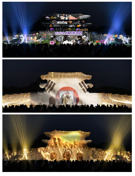 1부 '80개의 빛, 하나된 우리'는 광복 80년 상징 브랜드와 슬로건, 키메시지를 현대적 팝아트 방식으로 표현하고, 2부 '빛으로 새겨진 영웅들 : 광복을 향한 불굴의 의지'는 광복의 기쁨을 만끽하는 독립운동가들의 모습을 인공지능(AI) 기술로 생생하게 구현해 연출하며, 이번 광복절 계기로 포상된 독립유공자 311명의 이름도 광화문 외벽을 수놓을 예정이다.
