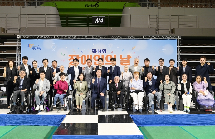 [뉴스서치] 화성시의회는 5월 3일 화성종합경기타운 실내체육관(화성시 향남읍)에서 열린 제44회 장애인의 날 기념행사에 참석해 장애인과 비장애인이 화합하는 축제의 장을 함께했다.