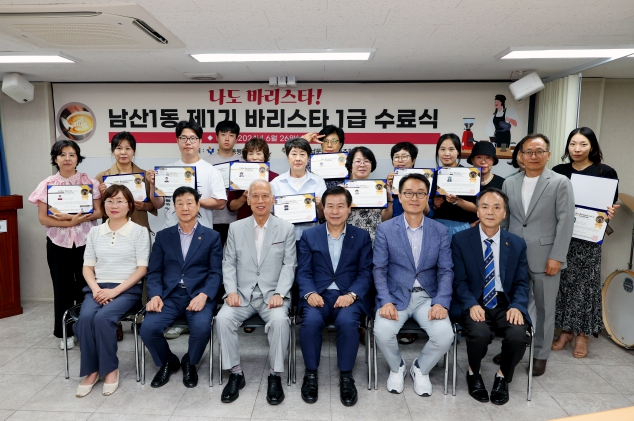 이번 수료식에서 자격증을 전달받은 참가자는 “교육비 때문에 접하기 어려웠던 바리스타 교육을 받고 자격증까지 받게되어 의미가 남다르다”며 “오래 거주하면서도 남산1동에서 진행하는 사업에 대해 잘 알지 못했는데 이번 계기로 관심이 생겼고, 동 주민들과 함께 수업을 들을 수 있어 즐거웠다”고 소감을 전했다.